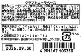 原材料名:甜菜糖(国内製造)、レモン果汁、グローブ、シナモン、カルダモン/香料