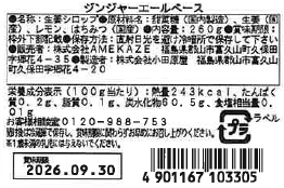 原材料名:甜菜糖(国内製造)、生姜(国産)、レモン、はちみつ(国産)