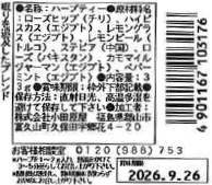 商品説明 | 名称:ハーブティー 原材料名:ローズヒップ(チリ)、ハイビスカス、レモングラス、レモンピール、ステビア、ローズ、カモマイルジャーマン、ペパーミント |