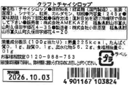 商品説明 | 名称:チャイシロップ 原材料名:甜菜糖(国内製造)、生姜(国産)、シナモン、紅茶、カルダモン、胡椒 |