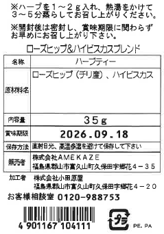 原材料名:ローズヒップ(チリ産)、ハイビスカス