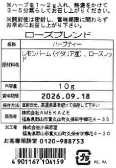 原材料名:レモンバーム(イタリア産)、ローズレッド
