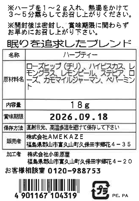 眠りを追及したブレンドハーブティー 茶袋 18g