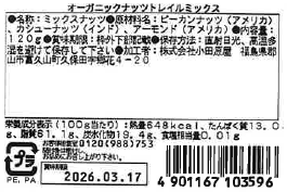 オーガニックナッツトレイルミックス ミニカップ 120g