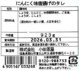 にんにくたっぷり唐揚げの素です。ひと袋に対し、鶏肉約8kg使用。業務用。