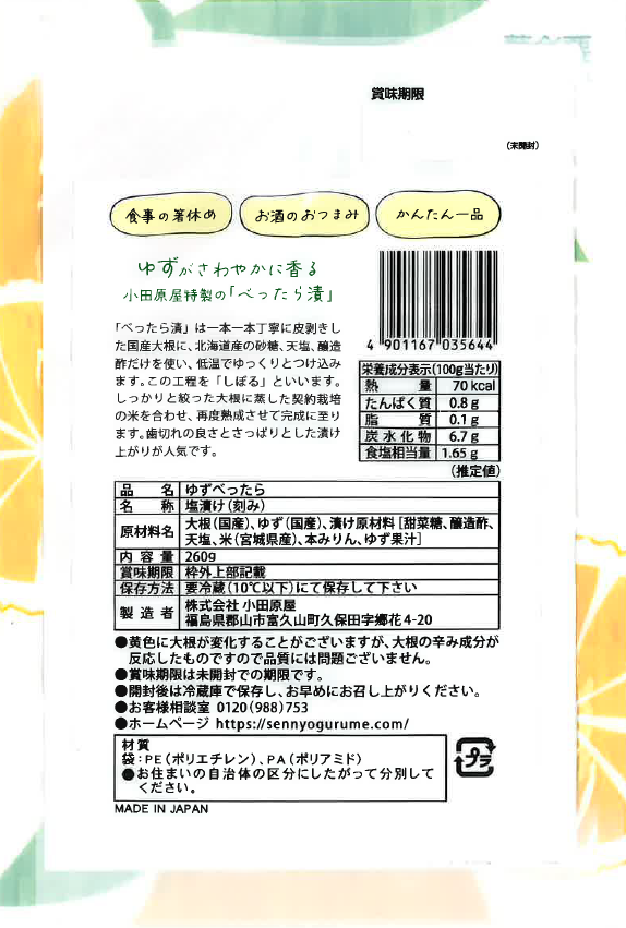 ゆずべったら 260g(季節限定10月~3月まで)