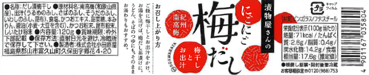 商品説明 | 名称:だし漬梅干し 原材料名:南高梅(和歌山県産)、出汁(うるめのふし、さばのふし、そうだのふし、いわしのふし、昆布)、食塩、かつおエキス、甜菜糖、本みりん、醤油(小麦・大豆を含む)、かつお粉末、昆布粉末、しいたけ粉末 |
