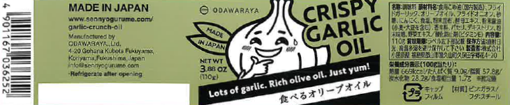 商品説明 | 名称:調味料 材料名:食用こめ油(国内製造)、フライドガーリック、オリーブオイル、フライドオニオン、砂糖、にんにく、食塩、粉末昆布、酵母エキス、粉末醤油(小麦・大豆を含む)、香辛料、パセリ、デキストリン、粉末味噌、野菜エキス/酸化防止剤(ビタミンE) |