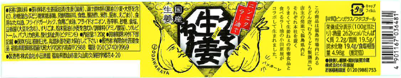 この商品は福島市場内にある、うどん店「むろうどん製麺所」の店主の発案で福島県内にそれぞれ本社を置く、うまくて生姜ねぇの吾妻食品と食べるラー油の小田原屋がコラボして生まれました。